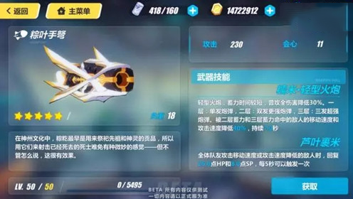 武器面板较低,推测是端午节活动可以免费获取的武器。