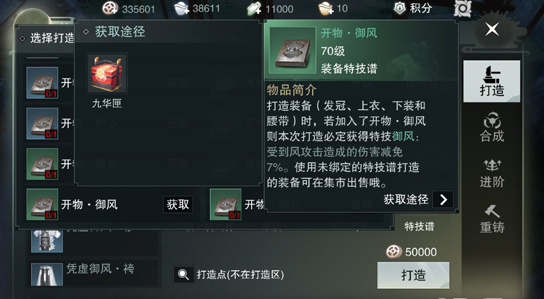 打造属性:受到风攻击造成的伤害减免7%