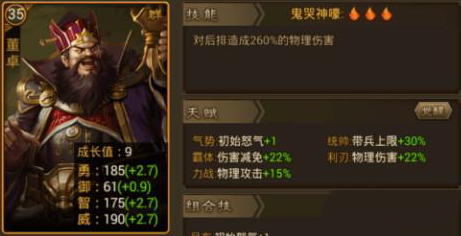 此3将同时出场董卓、吕布可+1怒,貂蝉自带+1怒都是2回合就出技能,而且技能伤害非常高,一个前排,一个后排,一个全屏,出手几乎就是秒杀全屏的节奏。