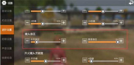 今天先不说其他的设置,我们就来单独说说进阶设置里的镜头盲区的这两个设置选项。不说可能有一大堆小伙伴并没有仔细看过游戏中进阶设置都有什么选项,相信很多看过的小伙伴也不知道这个镜头盲区的设置有什么作用吧?