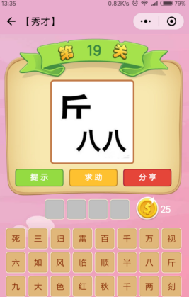 微信成语猜猜看秀才第19关怎么过?答案是什么?成语猜猜看秀才答案19关答案哪里找?微信成语猜猜看秀才第19关画面上是“一个斤字,两个八字”。游戏玩家还不甚清楚答案,赶紧跟西西小编一起一睹为快吧!