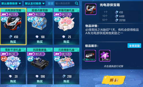 相信对于攒了许久点券的玩家来说,这次光电游侠宝箱的上架,无疑是给他们获取A车的方式又增加了一种渠道。不过想要得到这辆A车并不是非常的容易。