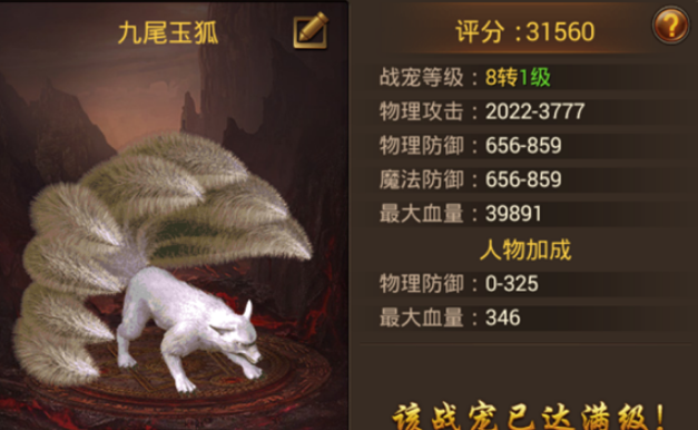其实这个战宠的获得方法还是比较不错的,玩家通过击杀130级左右的BOSS掉落的魂魄碎片来进行兑换,这样的话就可以百分百获得九尾玉狐了。