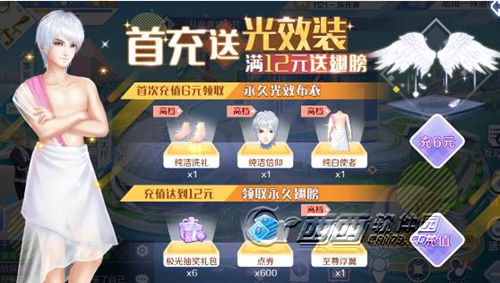 首充六元充值12元还可以获得永久白色翅膀,也是超值的奖励,在这款社交游戏中,装扮和外表都是非常重要的,祝大家游戏愉快!