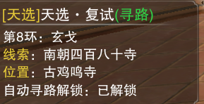 楚留香手游天选复试中玩家首先会获得考官位置的线索,经过1分钟才能自动寻路,自己找地方更能省时间,那楚留香手游南朝四百八十寺考官在哪里,西西小编为大家带来天选复试南朝四百八十寺考官位置介绍。