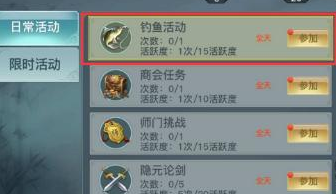 在日常活动中找到钓鱼活动并点击参加,人物将自动寻路到钓鱼活动NPC处襄阳(207,375),到达钓鱼点,此处有一名钓鱼翁,点击交互键和钓鱼翁对话。