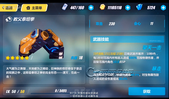 泰坦之拳是初始三星武器,最终可以进化成五星武器。根据以上特性和较低的面板可以推测泰坦之拳是一把可以通过肝活动免费获取武器和进化材料的武器,与爱酱的拐杖和杰克灯笼一样。
