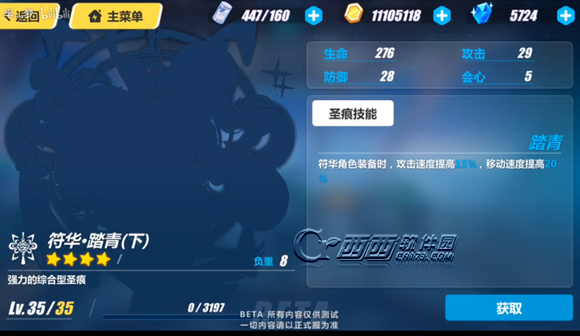 强力的综合型圣痕,符华角色装备时,攻击速度提高15%,移动速度提高20%。