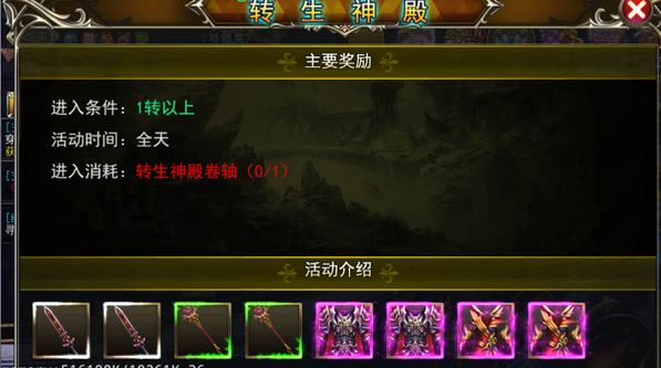 经过转生的角色可以进入更为危险的转生地图,与更强大的BOSS战斗,获得更为极品的装备与丰厚的稀有材料。