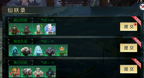 仙妖录是一个收集仙人和妖怪信息的玩法,仙人和妖怪会以组合的形式出现,激活组合后可以获得合的属性奖励