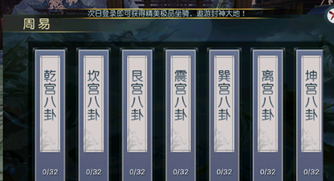 周易是文王六十四卦的手机玩法,每个卦都需要单独收集,每个卦需要提交四次才可以完全激活,完全激活后会获得属性加成