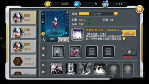 英雄进阶到绿色、蓝色、紫色、红色品质时,可以激活相对应的英雄全能,激活潜能后可以通过奥特纹章来进行培养升级。