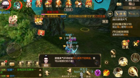 前面跟任务,直到开始打蛇妖的时候,让踩金色尾巴,之后让把蛇引入阵法,把怪带到绿圈打死,就成(第一个)