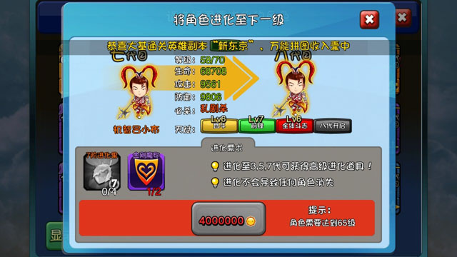 接下来就是很多艾米们都很关心的进化问题,进化不仅瞬间提高人物战斗力,而且每一代的进化都是质的飞越。有了进化,战斗力再渣的屌丝都有可能瞬间逆袭成为战斗力爆表的高富帅!所以,我们要着重讨论一下进化的问题。