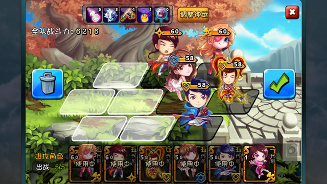 而不得不提职业是治疗,一个很克制属性上很重要的职业。可以克制金刚、力士、战士和刺客等肉盾型职业,而且攻击时可以打一趟线,等级代目高的话,输出还不低。阵容打到后面你会发现,职业克制是个很重要的事情。小编的阵容里正是因为缺治疗职业的角色吃了不少亏啊!!!小编现在的阵容就如上图所示,在吕小布还没有升到7代的时候打16章的第四个精英关卡根本没办法满星过去啊!!!看着没有满星的关卡你让身为处女座的小编我怎么受得了???!!!根本受不了,各种抓狂!!!各种掀桌!!!原因正是因为BOSS几乎是清一色的治疗啊,而且4个排成一列,第一个血还超厚的!!!这个时候小编就无比想念我以前的治疗机智张伟啊••••••所以小编这里要再强调一下关于融合卡牌的问题,一定要想清楚想要的阵容再决定,我就是刚开始时不懂事把张伟拿去给喂经验去了,现在真的是悔恨的各种老泪纵横,所以各位艾米们要以我为鉴,不要等失去了才后悔••••••【→_→好像跑题了,SORRY啊•••••】