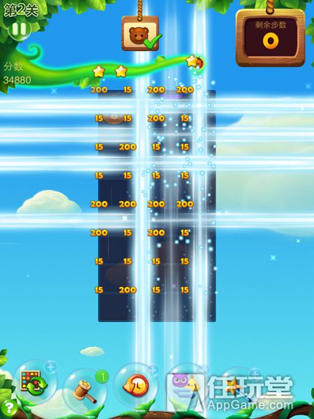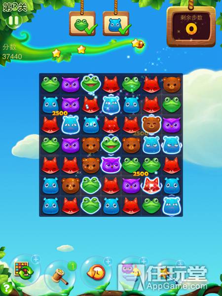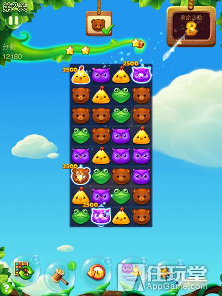 不同的关卡,要求消除的动物也不一样,有难度才有挑战!如果你是三消高手的话,仅在七步之内完成关卡的要求,还能等到剩余步数的奖励哦!
