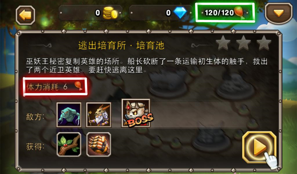 每进行一个关卡,都需要消耗一些体力(如红框中所见)。