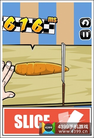 游戏玩法:连续快速点击按钮,快速的切完蔬菜。