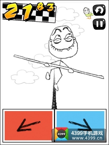 游戏玩法:尽可能的点击左右箭头保持平衡,尽可能的走到更远。