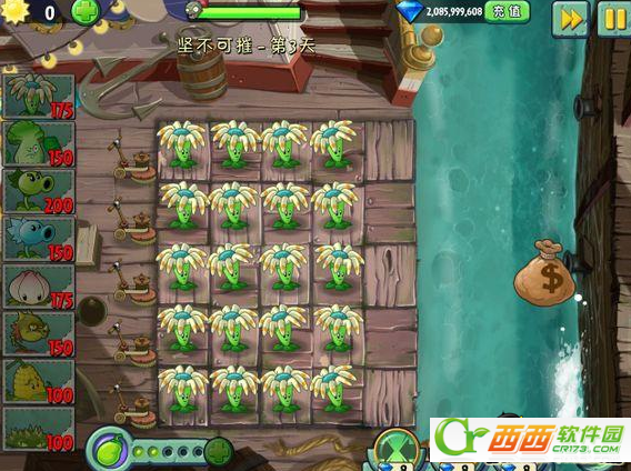 植物大战僵尸2安卓版刷金币攻略,想要高效率刷僵尸必须满足两个条件,第一是僵尸死得快,剧情推进快;第二是最后一波僵尸快速消灭。简单讲,是僵尸要弱,不能有铁桶僵尸、滚桶僵尸这些硬骨头,因此,适合刷钱的关卡只有海盗坚不可摧第一天和海盗坚不可摧第三天。下面西西小编就来教大家植物大战僵尸2刷钱攻略,让大家快速的刷到购买植物的金币。