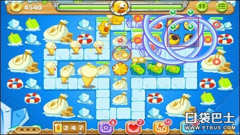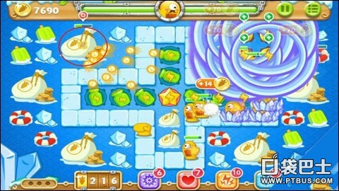 4、升级出现的道具,集火攻击左下方的大金钱袋,攻击正下方的金钱袋。