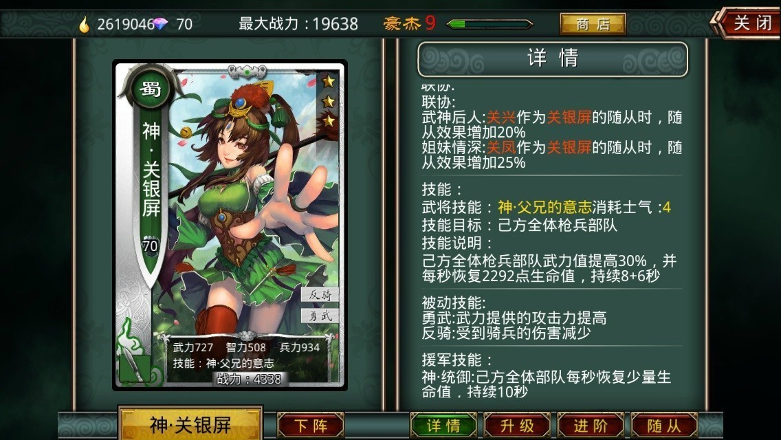 在接下来的游戏中,我们得到的卡会越来越多,慢慢的用蜀国阵容替换这套阵容,让它变成一套真正最强的一套蜀国枪兵阵容。如果无法集齐所需要的蜀国武将,进阶这些武将卡,和配上神级随从,这套阵容就算在后期仍然是一套很强的枪兵阵容。