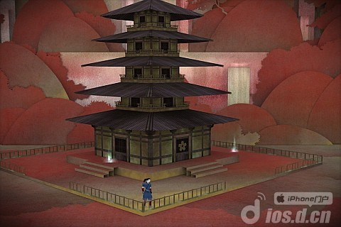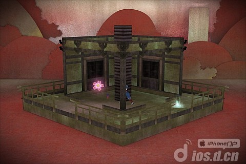 8、出现一座塔,有两个传送点,进入左侧一个,出现一间小屋,右侧门可以滑动,窗子里有粉色樱花飘落。回上一层。