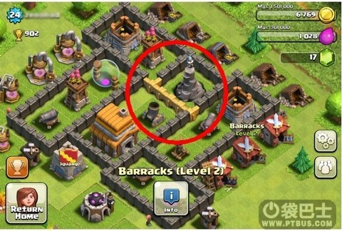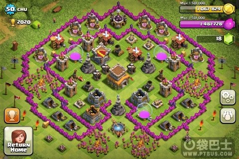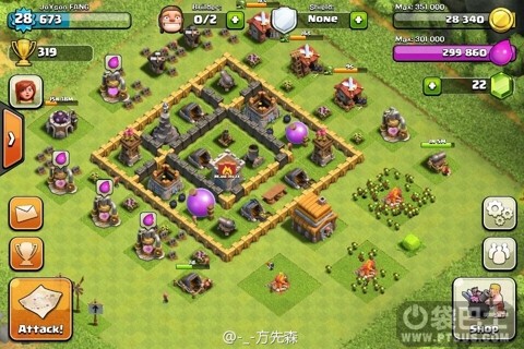 2.迫击炮和防空之类的最好升到你能升的最高级别,然后摆在较为中心的位置,如果你的资源库是个娇弱的妹子,那么这些防御设置就是能为她们撑起一片天的粗壮汉子~