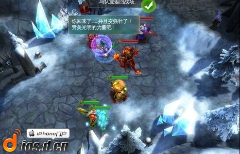 进入游戏后,系统会有相应的操作提示,帮助各位玩家快速的入门。作为一款移动设备上的游戏,《混沌与秩序英雄战歌》与其他手机游戏的操作方式大致相同,采用虚拟摇杆加触屏的方式来操控英雄。玩家可以使用虚拟摇杆控制英雄的移动,也可以点击游戏场景中的某点来操作。
