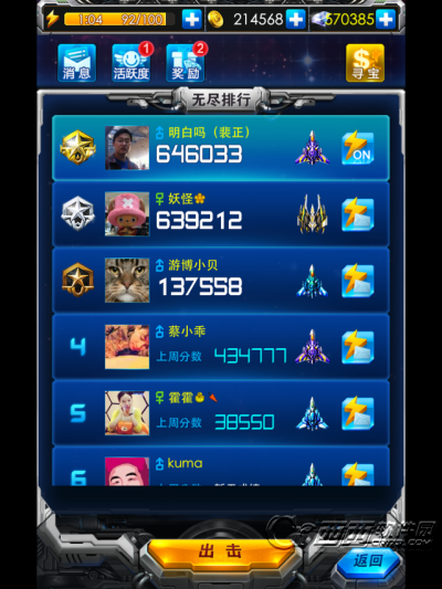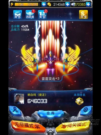 3、★好友比拼,激情无尽★:邀请好友一起发动雷霆战机,射击高手,同场竞技。无尽模式,炫出你的Style!当然拿下高分所需要的必然是一架顶级战机了,想要拥有它还需要大家努力赚钱了。