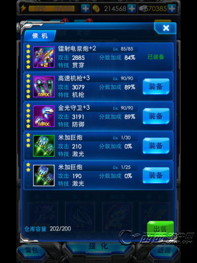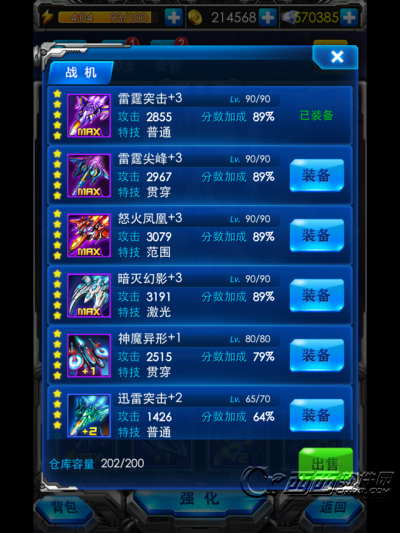 战机:玩家的主要武器,最主要的输出。 每一架战机都有着其独特的特点,有的是散弹机,有的是激光炮,玩家可以根据自己的使用习惯来挑选适合自己的战机。