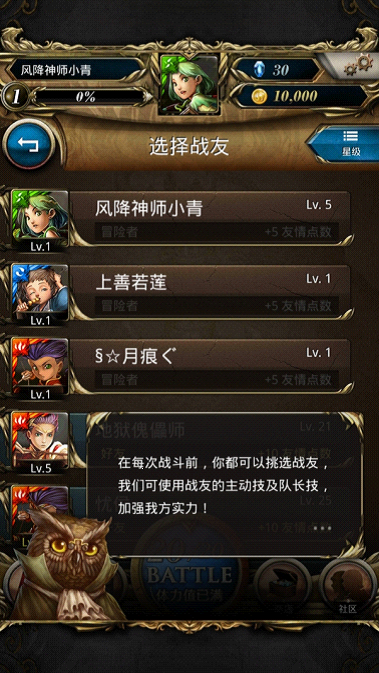 升级可以提高体力上限,影响战斗的场次,提升队伍空间,能够容纳更强力的队员!这样不断的升级自己的队伍,通过强化合成去加强召唤兽的能力,具体操作就是点击界面中的“背包”,选择要强化的角色,然后点击批量选择按钮,选择要牺牲的卡牌,之后再点击确定,接着就是华丽的动画,在强化至最高等级之后,就可以“进化”为更强大的召唤兽了。