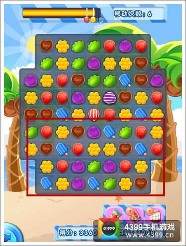 先消除下方的可以对上方的进行一个小范围洗牌,区域调整有利于之后的消除,算是为后面做一个铺垫。