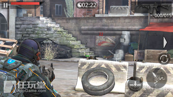 这一类射击动作游戏一般来说都没有太多剧情,简单地给玩家分配一个角色然后上战场基本就是全部了。游戏的操作模式如果有玩过《机械战警》的玩家相信会非常熟悉,滑动左手边屏幕为移动画面,像射击、切换武器、找掩体、切换掩体、召唤无人机、呼唤战友进行治疗和扔炸弹等则由屏幕相对应的按键来实现,功能虽然繁多但是操纵上却非常清晰简单。