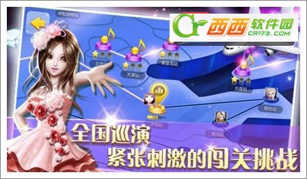 在游戏中,你将化身炫舞明星,开始全国巡演之路;随着关卡的递升,你将登上全国不同城市的舞台,获得越来越高的人气; 而你的朋友们也在努力的为实现巨星的梦想而不断前行,和他们一起比拼,看谁走过最多的城市,获取最多的掌声吧!