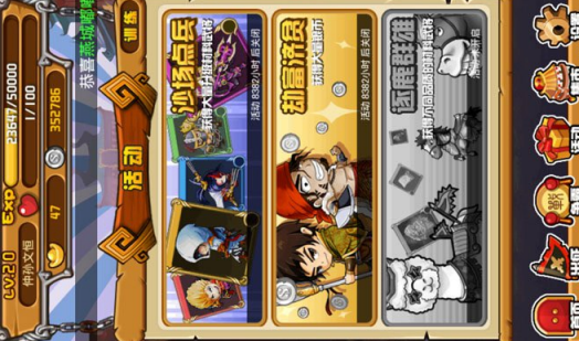 游戏中每天都会开放不同的活动副本,如经验副本、金钱副本等等,挑战胜利后可获得相应的奖励,同时,挑战所消耗的体力是根据活动副本的难度来决定,而前期大家就不要想着挑战高级的活动副本,那些都需要一定的实力才可挑战。