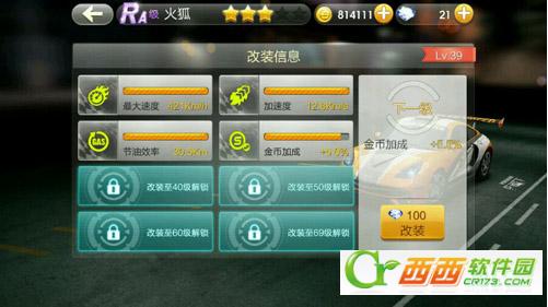 火狐购买和升级费用为48W+86W+4500钻,合计134W+4500钻,而其基本属性(最大速度、加速度和节油效率)只跟S级疾风差不多,所以小编认为还是入手一辆A车再升S比较划算!