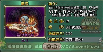 合成英魂战争之箭需要80个战争之箭碎片或者万能碎片,每2000军功可以在军功商城中兑换一个战争之箭碎片。