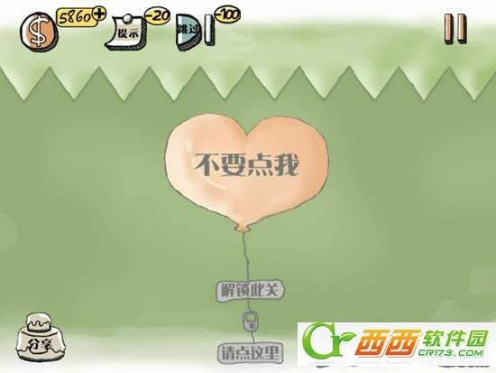 技巧:等气球上升到下图位置时,点击“请点这里”即可过关。