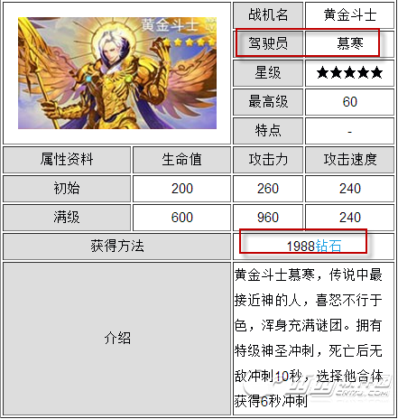 黄金斗士慕寒,传说中最接近神的人,喜怒不行于色,浑身充满谜团。拥有特级神圣冲刺,死亡后无敌冲刺10秒,选择他合体获得6秒冲刺