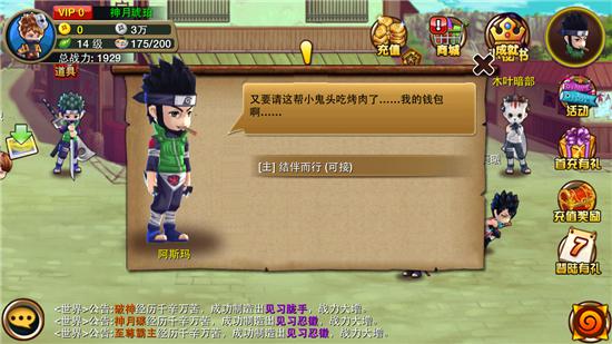 殷实的任务系统不会让你停下冒险的步伐,当然除此之外你还可以参加一些社交或者世界活动,即便你将现有的剧情打穿也不必担心无内容可玩(实际上要花很长很长时间)。在最新的版本中,游戏加入了全新的秽土转生系统,玩家可以依次挑战秽土转生关卡,每个关卡分为3个难度,通关每个难度的关卡都可以获得1颗星。每天根据星星评定可以领取影丸,可在影丸商店购买秽土宝箱(声望,宝石),洗练石,高品质秘药。