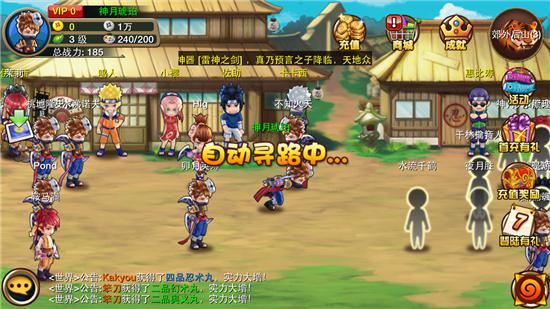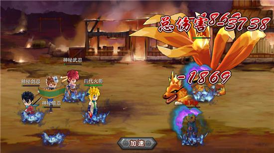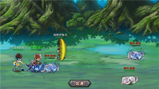 在忍者世界中,快意恩仇的直接体现我想应该就是战斗了吧。本作采用了回合制自动战斗的形式,也就是说,玩家只要在开打前安排好队伍和装备等内容,接下来就可以翘起双手欣赏战斗了。除了自身角色的招式是虚构之外,水门的飞雷神之术、鸣人的影分身、卡卡西的千鸟、木叶丸的色诱术等技能在特色体现上可谓功底扎实,音画效果相当到位。