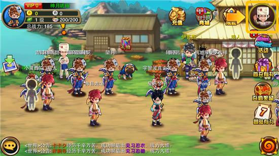 在卡牌游戏大行其道的今天,《忍者Q传》也在其中参杂了少量卡牌玩法,与 RPG 相结合之后趣味有所提升。比如小伙伴招募的卡牌玩法让人体验到了人物收集的乐趣。此外玩家还可以通过装备、秘传、强化、禁术、咒印这几个主要途径来对个人实力进行提升,而国内比较常见“队形”玩法也出现在游戏当中,由此可见本作也是讲究一个战前安排策略。