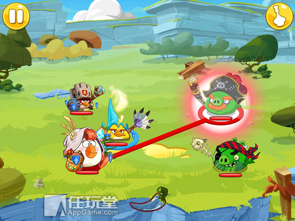 正所谓好基友,一起走。在战斗中不仅可以攻击绿猪,还可以给队内加攻防——红鸟提升防御,白鸟给集体补血,黑鸟加强攻击等等。卡牌游戏中个角色的技能升级和养成也是一个很大的难题,不过本作中却能让一般的玩家也能够快速上手,体验卡牌游戏的魅力和乐趣——角色的技能不需要玩家进行太多的规划,每一种小鸟的技能会随着武器的变化而变化,武器属性的增强而增强。