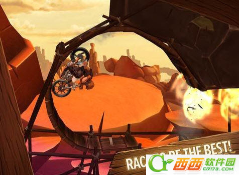 《Trials》系列被称为“特技摩托”,是赛车竞技游戏的一支独苗品牌,其作品在 XBOX360 和 PS3 等家用机平台均有发售,大家最熟悉可能是《特技摩托 进化(Trials Evolution)》,这个系列以高难度的跑道设计和深入的挑战(虐人)令玩家又爱又恨。iOS 版的《特技摩托 前线》走的是与主机版不同的动画风格,游戏背景设定在西部美国,这里有着粗犷豪放的风情,当然依自然地形而建的特技跑道还是那么的残酷无情。