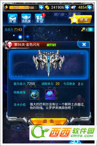 各位还记得48关的要求战力是5642吧,到了56关,战力就飚升到7255.....想要过这关的朋友需要做好准备了哦。