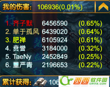 我的伤害:你对BOSS造成的伤害,百分数为你在团队里的付出。