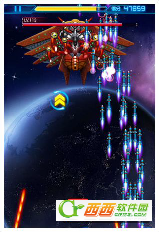 而且同屏的敌机数量也不多,大型敌机一波不超过4架,就是因为弹速变快,敌机发动弹幕攻击的时间提前了点,只要不要慌,基本都能躲避,满血到BOSS面前也是正常的。(不过如果被打中伤害还是蛮高,几下就没血,特别是旁边撞过来的自杀式飞机,100战力差都掉三分二,150以上战力差的应该直接秒了。)