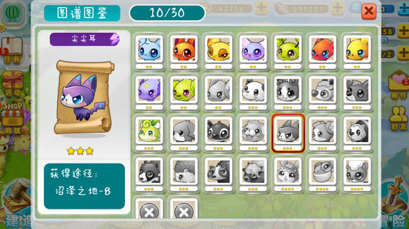 【卡若兽】:翡翠深林最后一关掉落,二星满级宠物可以通过。只要一张图鉴就能合成三星宠物,一定要在这关卡抽到这张。不然靠二星宠物过不了沼泽之地。然后三星宠物就到手了。