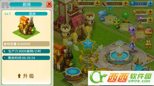 厨房升级可以提高食物产量和厨房食物容量,升级需要消耗金币和时间。